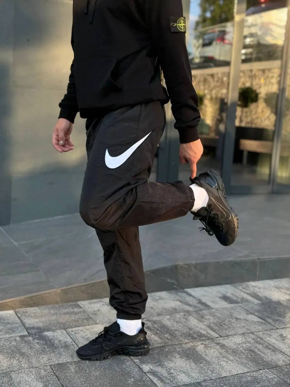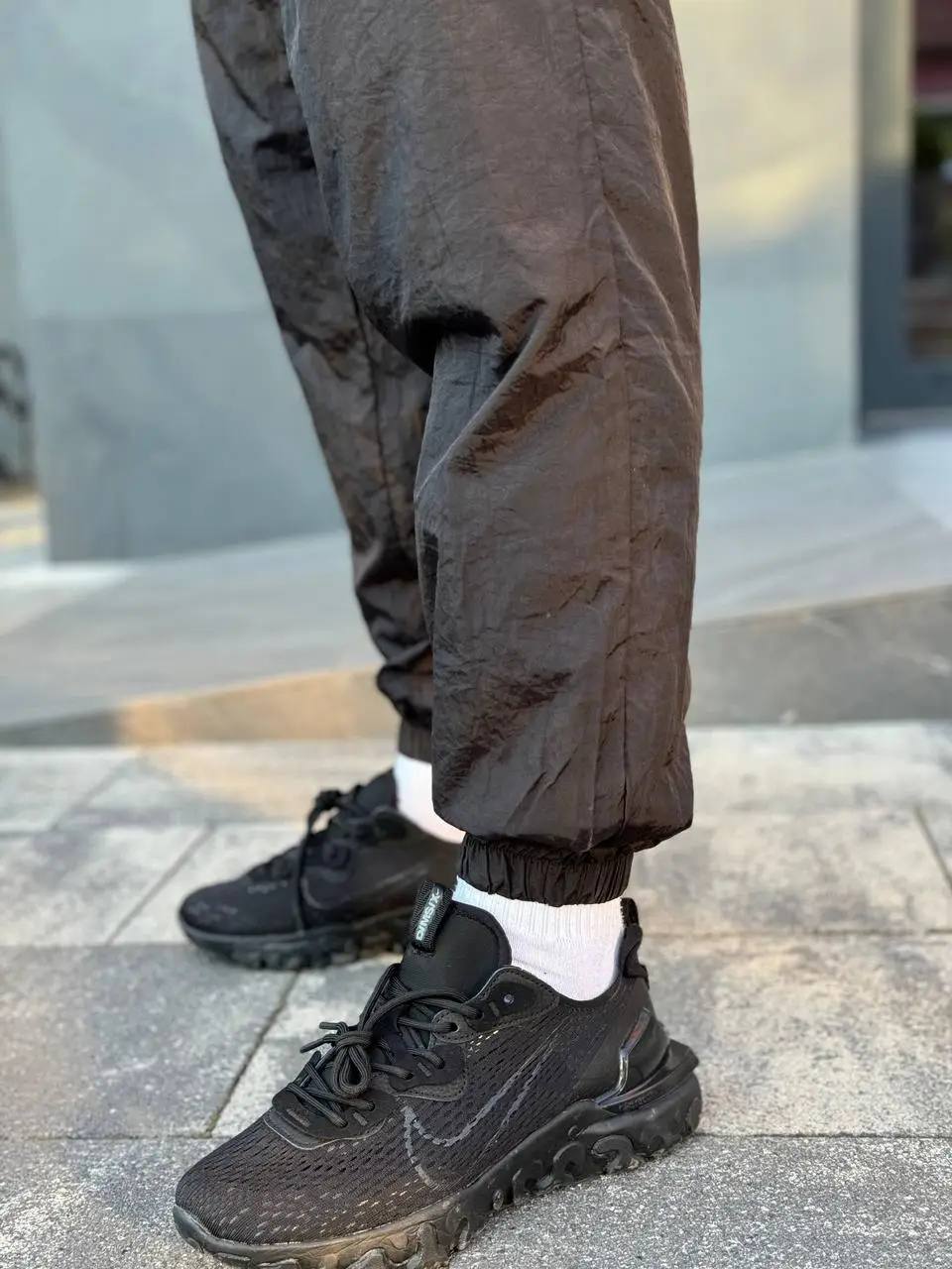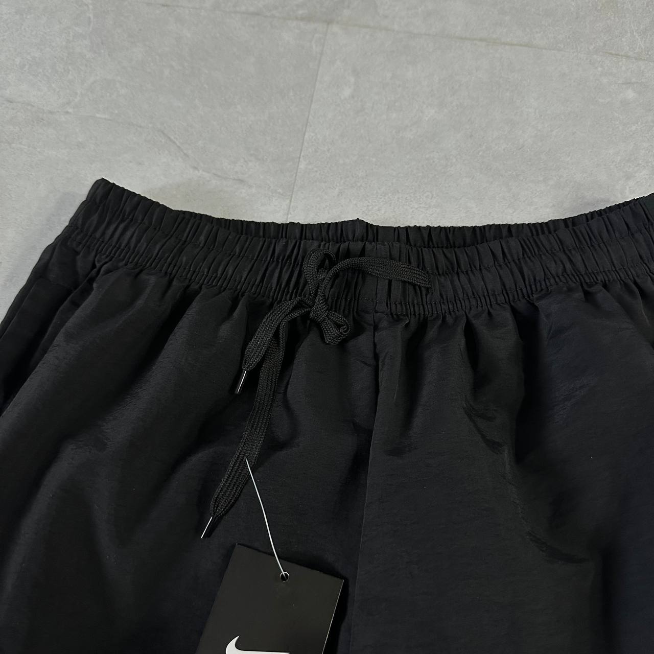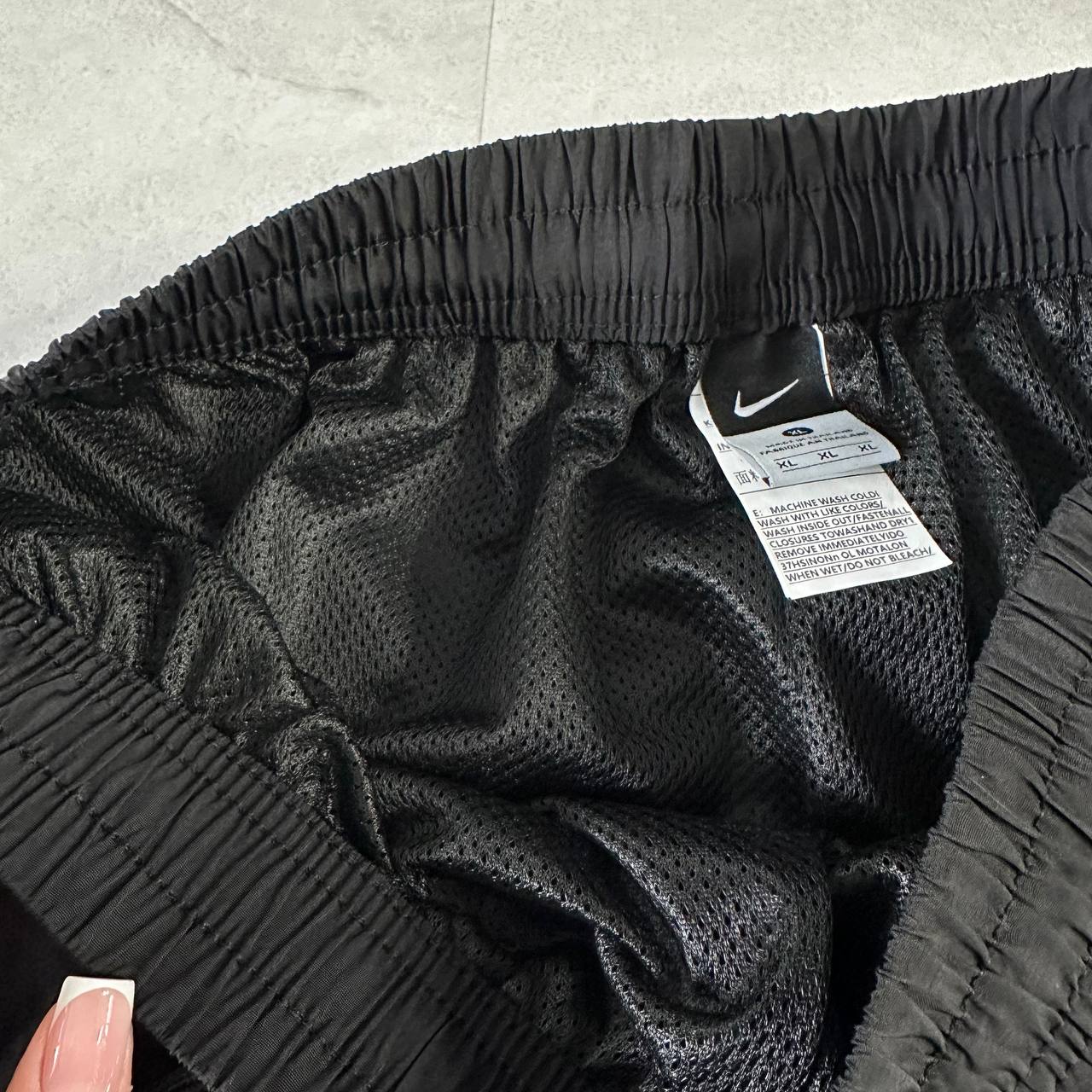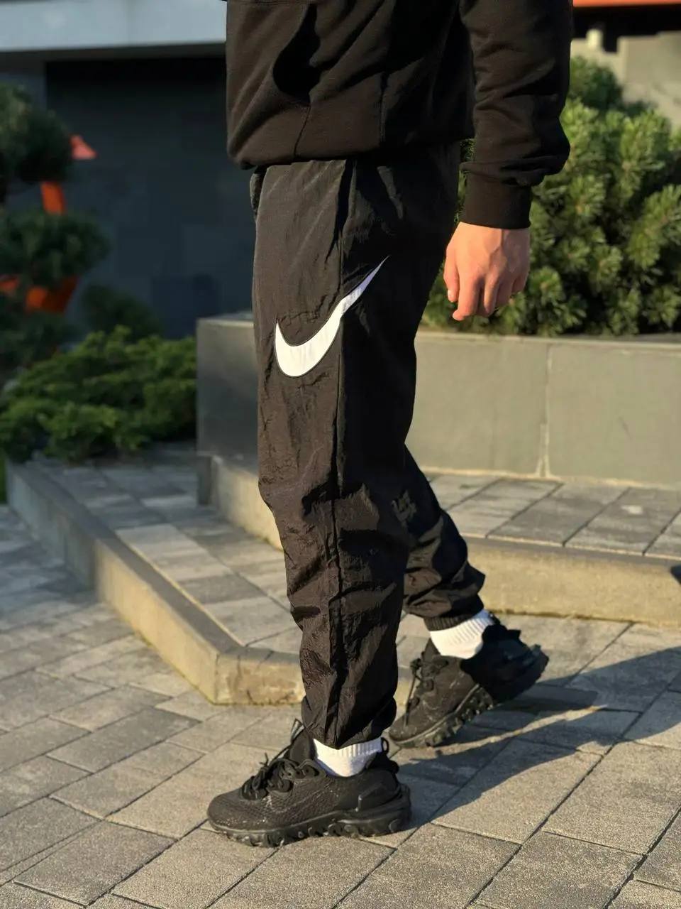 Стильні спортивні штани з легкого та міцного нейлону. Матеріал має вітрозахисні та вологовідштовхувальні властивості, що робить їх ідеальними для активного способу життя та повсякденного носіння. Зручний крій, гумка на поясі та манжетах забезпечують комфорт та свободу рухів. На штанині – великий фірмовий логотип Nike Swoosh, що підкреслює спортивний стиль бренду.